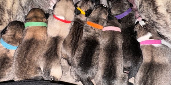 On this page, you will find sooo many things. Below you will find a little info about our adventure, individual puppy pictures, pictures of all the puppies together, and the puppies' statistics, such as their body weights, deworming schedule, and nail trimming.